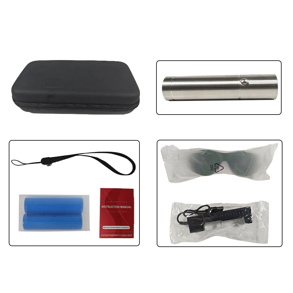 3.Red light therapy torch’s timer function, lighting for 5 minutes, then turn off Automatically.