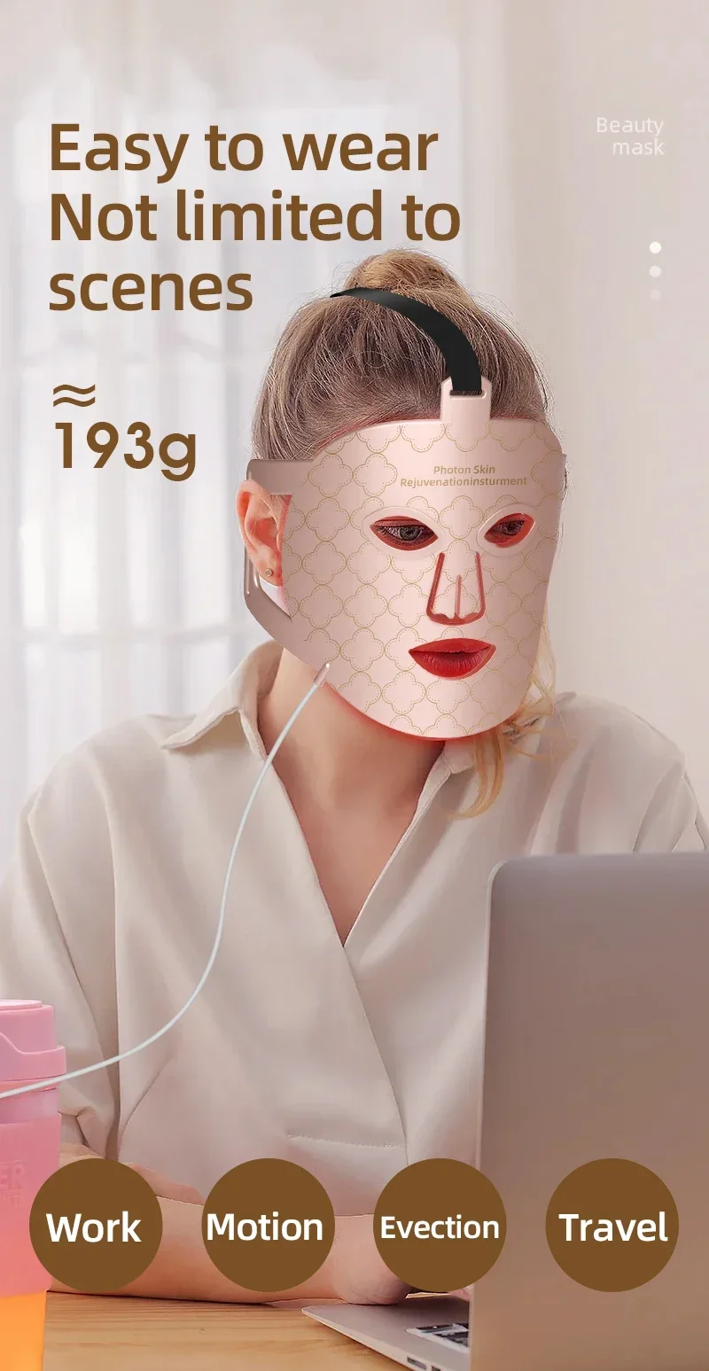 Masque souple de thérapie par la lumière LED rouge, 4 en 1, infrarouge, silicone flexible, 4 documents, thérapie par LED, anti-âge, masque photonique avancé, IPX7, nouveau