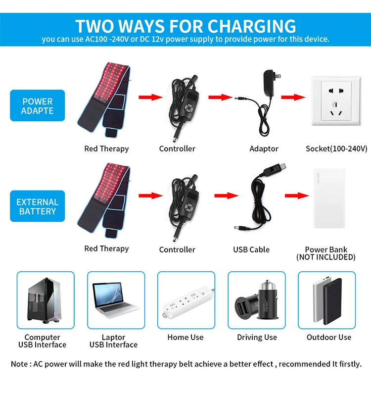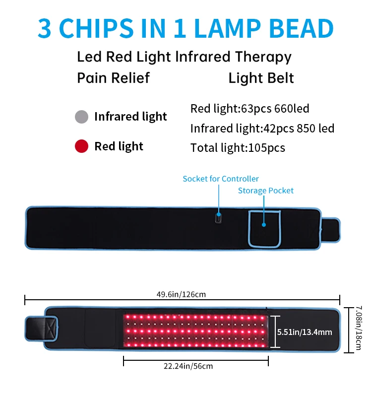 Portable Pain Relief 660Nm 850Nm Infrared Red Light Therapy Belt